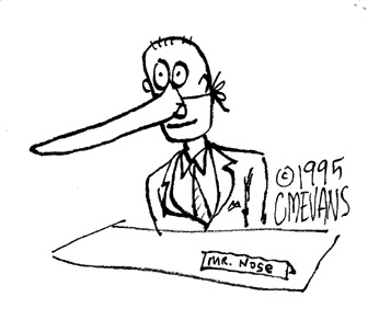 I'm old school. Seriously OLD SCHOOL. How far back? I dunno, I think I drew this "Blue Folio" styled cartoon in about 1885 -- I mean 1985, still in high school & Ronald Reagan was president. CDs were a hot new technology (DVDs were not yet perfected) and we all had to have our Walkmans. ATM machines were starting to show up, New Wave was exploding on MTV and VH1, we were a few years before the first Gulf War. Remember Gulf War I? Kids didn't have cell phones, not even pagers yet, you were cool if you had an answering machine, a beta video tape deck, or an Atari game system. My computer was an Apple II plus with 56K, later upgraded to a smoking 112K with dual floppy disk drives. Did you know the Apple II plus cost about 3K out the door? In 1985! CM Evans Cartoons